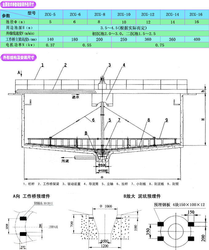 1、订货时,请注明池径、池深等主要参数及提供沉淀池土建图;