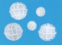 产品简介: 球形悬浮填料, 又称孔旋转球形悬浮填料 ,是对国内处理污水、生物膜法处理技术采用的多种填料中开发的最新系列产品。分内外双层球体,外部为网状球体,内部为旋转球体。 用 途: 广泛适用于生活污水、石油化工、轻工造纸、食品工业、酿酒、制糖、纺织、印染、制革、制药等工业废水的处理。 性能特点: 该填料由聚丙烯材料注塑成形,微生物挂膜快、生物膜易脱落,抗酸碱、耐老化、不受水流影响,使用寿命长,产品耐生物降解,剩余污泥极少,安装方便。 技术参数: 脆化温度负10摄氏度,比表面积380-800m2/m3,孔隙率大于99%,比重0.93。 规 格: Ф150mm,Ф100mm,Ф80mm 订货须知: 订货需明确所需填料的 规格、种类、数量或立方数 等。